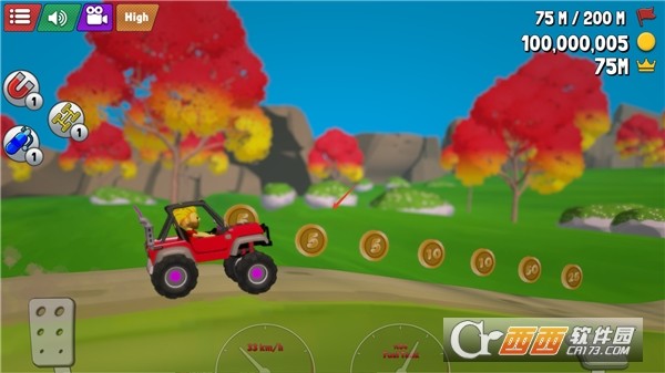 - 在行驶过程中,可以收集道路上散落的金币,增加奖励;