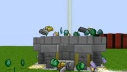 4、接下来放上祭坛Offering altar,拿着黑曜石,砖石,绿宝石依次敲击祭坛。