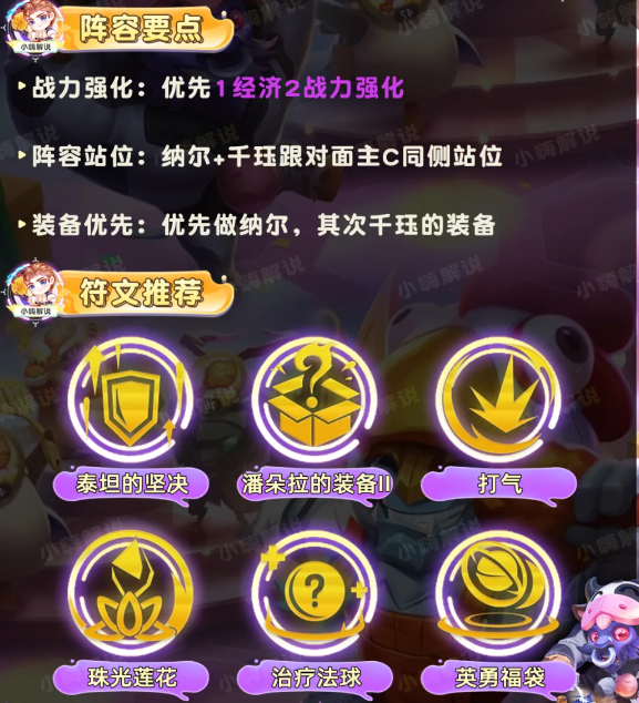阵容前提:开局有纳尔or千珏,相关强化符文