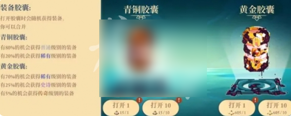 - 青铜胶囊和黄金胶囊获得的装备品级相差较大。