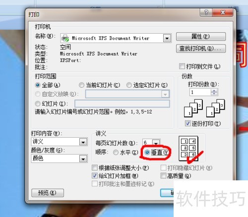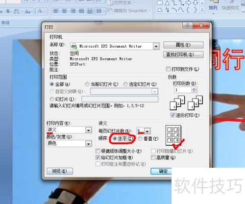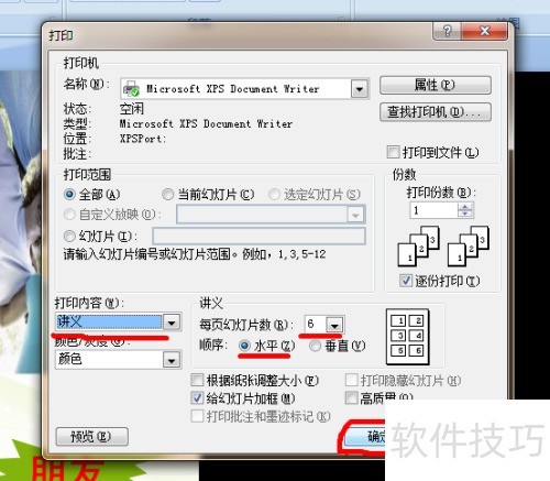 确认讲义内容、每页幻灯片数量及排列顺序后,在打印设置中点击确定按钮,即可开始打印PPT讲义。