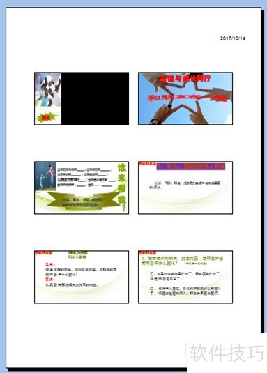 - 等待打印机输出纸质讲义,PPT讲义模板将按图示样式打印出来。