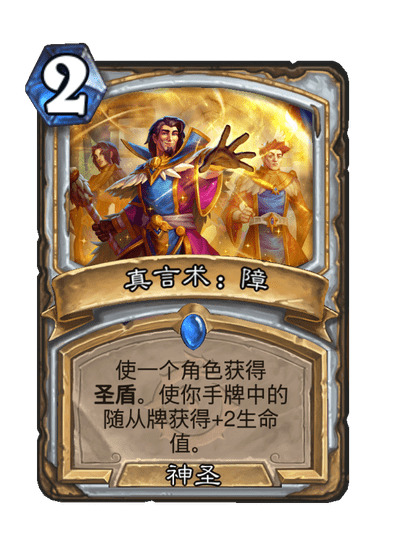 使一个角色获得圣盾。使你手牌中的随从牌获得+2生命值。