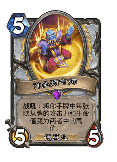 战吼:将你手牌中每张随从牌的攻击力和生命值变为两者中的高值。
