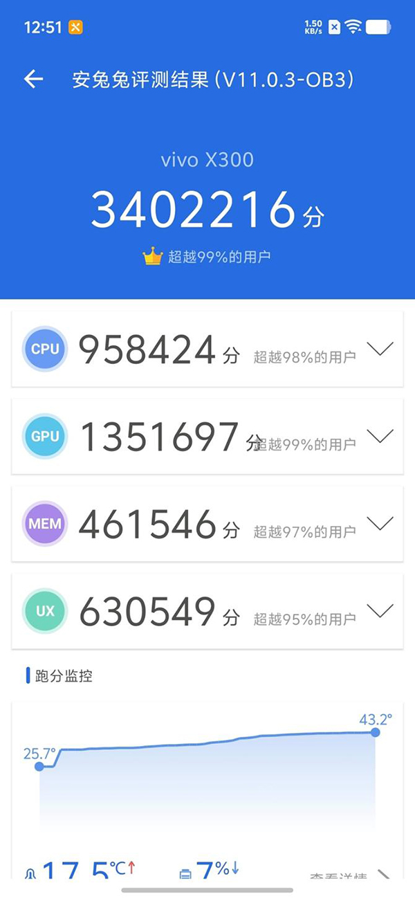 vivo X备LPDDR与UFS 搭载天玑片,存储成绩高达,堪称主流旗舰级别的表现。
