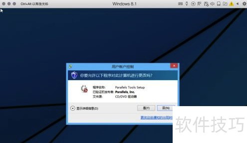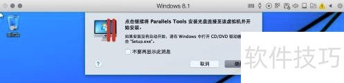 随后系统将自动挂载 Parallels Desktop 驱动光盘到虚拟机,通常自动启动安装程序,确认后点击“下一步”完成设置。
