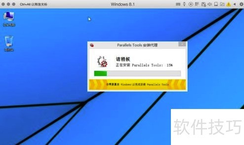 - 请耐心等待 Parallels Desktop 为系统自动安装所需驱动程序,过程所示。