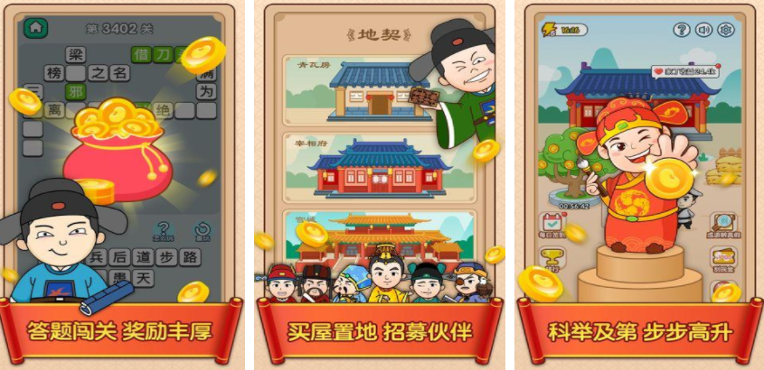 才子升官赚是一款让玩家体验古代生活并获取大量成语知识的游戏。游戏中的初级阶段,玩家通过成语和谚语的考验,逐步提高自己的学问地位,成为寒门学子之后,就可以逐渐成为状元。在这一过程中,玩家会不断积累和掌握大量的成语知识,并且晋升到更高一级别时,需要继续进行挑战才能保持能力的提升。每个玩家都能在这个游戏中通过挑战来增强自己的成语知识储备,并且角色等级也会相应提高。