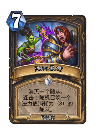 消灭一个随从。连击:随机召唤一个法力值消耗为(8)的随从。