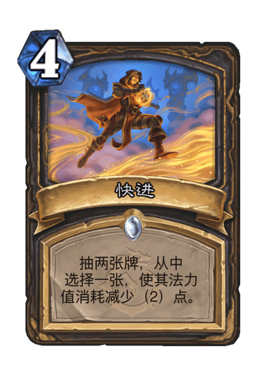 抽两张牌,从中选择一张,使其法力值消耗减少(2)点。