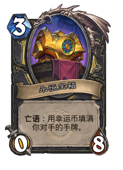 战吼:为你的对手召唤一个0/8的宝箱。宝箱装满了幸运币!