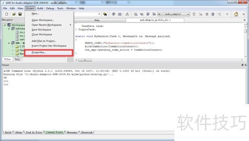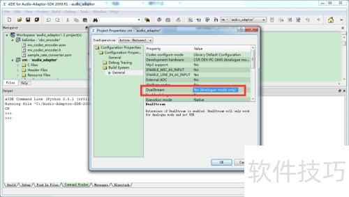 - 打开工程后,进入Project菜单选择Properties,即可配置工程属性,并在此设置一拖二功能。