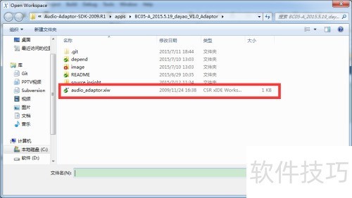 - 工程文件位于安装目录中,所示,文件后缀为.xiw,请注意正确识别。