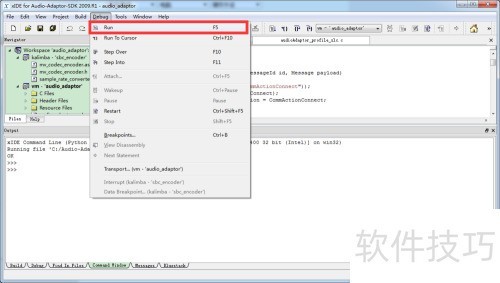 - 打开软件后,点击Project菜单中的Open WorkSpace选项,即可加载工程文件,所示。