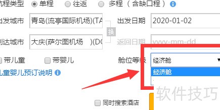 4、 第二步填写出发时间,也可同步查询并填写返程机票及返回日期,此处以2020年1月2日为例。