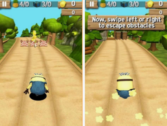 化身为小黄人,在第三视角中展开跑酷游戏不仅玩法保持一致,还利用俯视图设定,让玩起来时能更好地了解其中的艰难之处。通过点击屏幕,操控小黄人翻滚、闪避和使用道具,能够在游戏中更加流畅地完成跑酷任务。