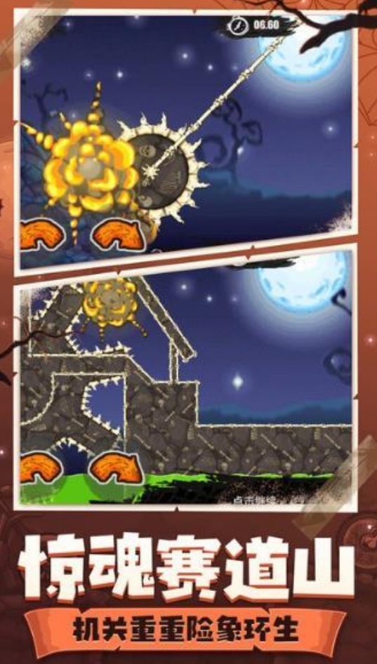 这是一款融合节日元素和摩托车竞技精神的游戏,以万圣节为主题设计了一种独特的视觉风格和场景设定。在游戏中,玩家需要操控摩托车在密布陷阱和机关的山路上极速行驶,并躲避南瓜灯和幽灵装饰环境中的障碍物。复杂的地形与突发的阻碍增加了游戏的紧张刺激感,挑战着玩家的操作技术和反应速度。这种充满节日氛围的游戏体验设计,为玩家带来了既充满乐趣又具有挑战性的骑行冒险。