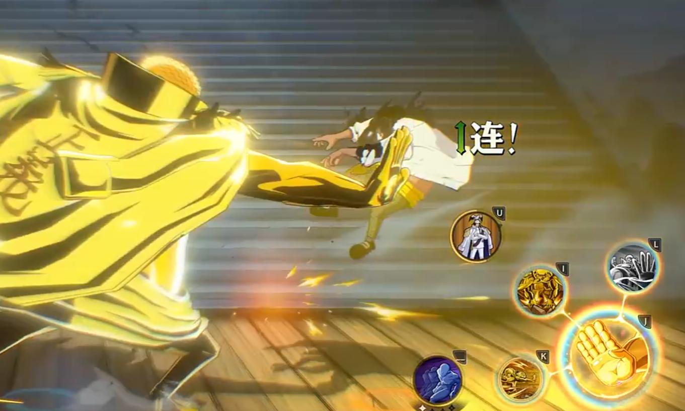 战国的攻击模式在正常情况下有五段,并且都是左右手快速击打,第是左手下勾拳,最后一步是飞踢终结。玩家可以在实战中通过长按普攻进入快速连打模式,在这种状态下会强化攻击效果和拳风。而能的短按则是在原地正步向前击打,长按则是跳跃后向斜下方打击。