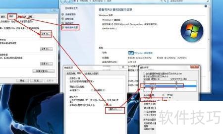 1、 调整虚拟内存:右键点击此电脑,进入属性,选择高级系统设置,点击性能选项中的设置,在高级选项卡下找到虚拟内存更改。选择非系统盘如E盘,启用自定义大小,设定初始与最大值后,依次点击设置和确定完成配置。