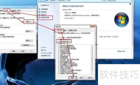 2、 优化Windows外观与性能:右键此电脑进入属性,选择高级系统设置,在性能选项中点击设置,切换至视觉效果标签,勾选调整为最佳性能,最后确认保存更改。