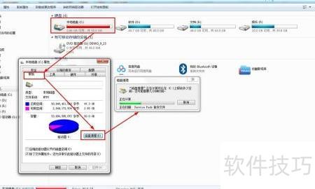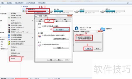 9、 右键点击磁盘,选择属性,进入工具选项卡,启动检查功能,勾选相关选项后开始扫描并修复磁盘错误。