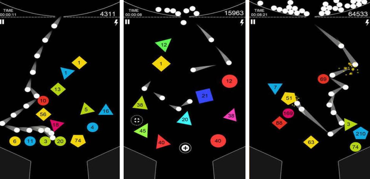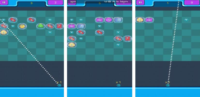 弹一弹这款游戏最大的特点就是采用了无尽模式,屏幕中有无数个弹珠小球和无数个砖块,玩家的主要玩法就是让小球弹射到三角或圆形砖块上,且每个砖块都有相应的数字,而数字就是该砖块消失的次数。游戏中的弹珠受轨迹以及重力系统的限制,使用弹珠弹射之前还应该提前计算好轨迹。