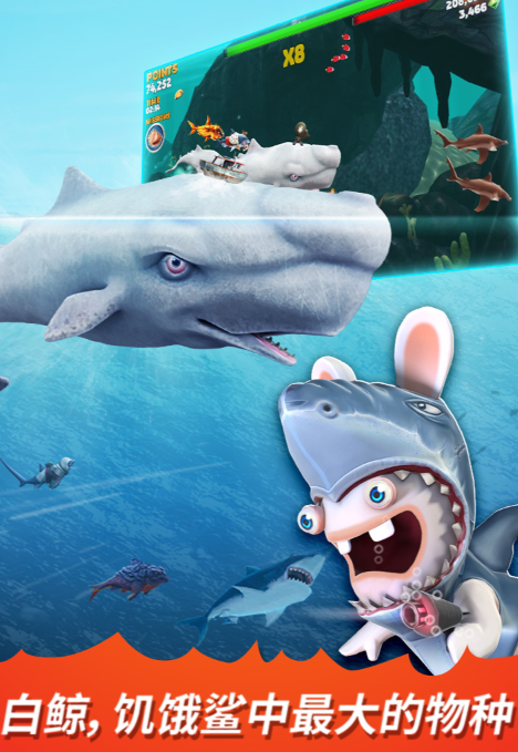 轻松愉快的小游戏,核心机制是操控小鱼在水底觅食。体型较轻的小生物都能成为猎物,人类也不例外。通过捕获更多猎物,鲨鱼的大小将不断增大并进化成长大白鲨。这将在海洋食物链中占据统治地位。游戏中有多种可解锁的鲨鱼类型,我们可以挑选属性出色的鲨鱼进行培养和升级。一步步打造成为海洋中的霸主!