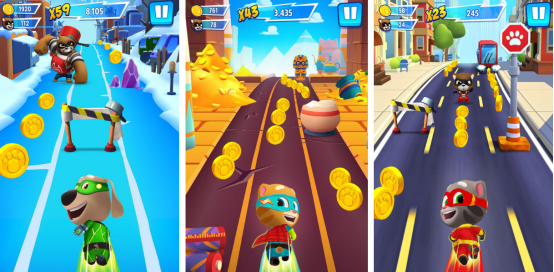 官方正版授权,以汤姆猫经典角色为核心,化身成为超级英雄进行比赛,需要在不同的赛道上奔跑。赛程中可能会遇到障碍物如迎面而来的车辆和身后追击的浣熊。目标是成功跨越这些障碍,将浣熊打败并拯救家族成员。同时,在整个过程中会收集大量的金币等奖励。