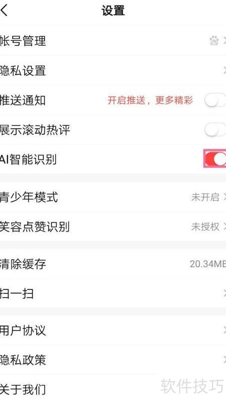 - 进入设置页面,点击AI智能识别中的开关按钮。