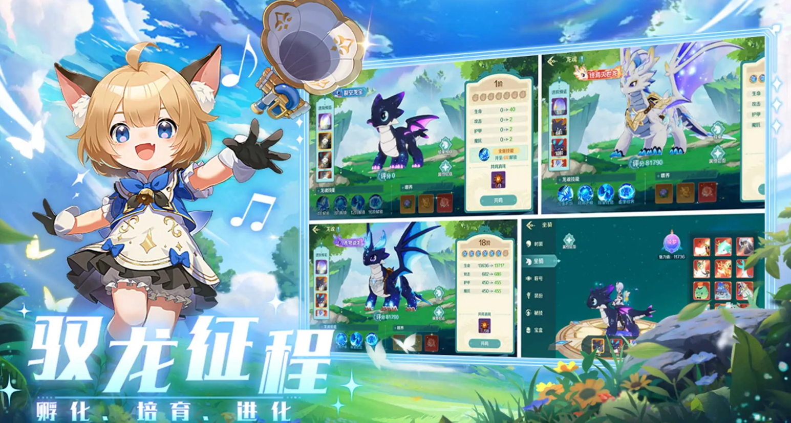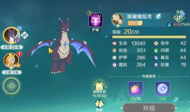 开启三个阵位后,能搭配的阵容就会变得非常多样,比较适用的有3种,第1种是输出+盾位+治疗的组合,比方说输出位选择喵灵,让其打出强力的输出,盾位选择“陨翼魔焰龙”,它的技能是给主角提供一个伤害护盾,护盾在被打破之前每秒都能帮助恢复一定的生命值,最后加上安卡,它带有的治疗技可以让大家在战斗之际有充足的血量去拼杀;