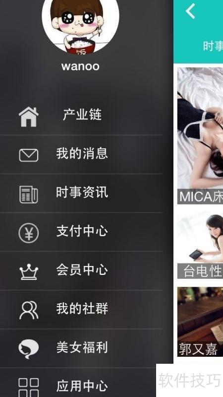 2、 首页左上角设有信息查看图标,点击后可进入多个功能板块,包括产业链、我的消息、时事资讯等内容。