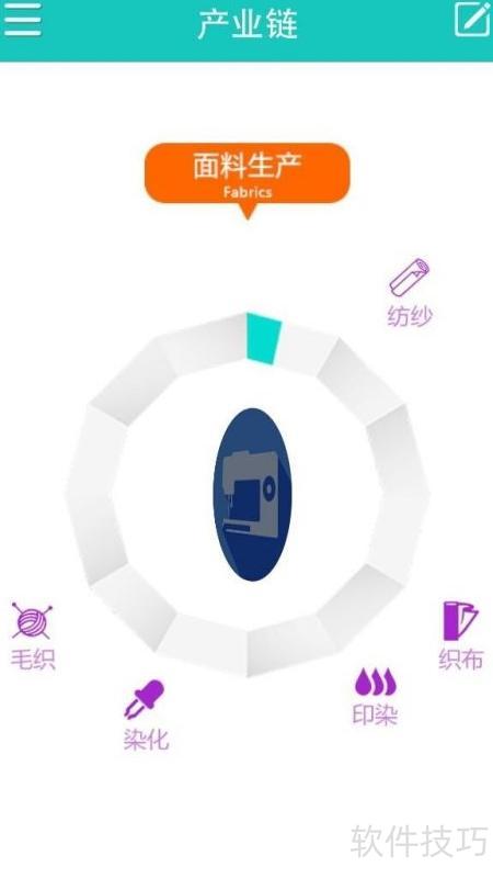 向上滑动触摸屏,踏入第四个面料制作篇章,包括纺纱、织造、染色与印染、化学处理以及毛纺织在内的五个领域,每一项操作都详细地展示其相关资料。