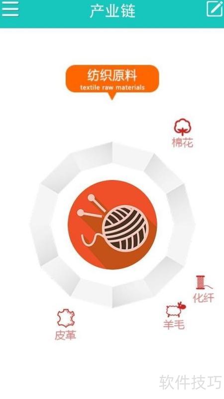 向上滑动屏幕,轻轻触碰即可进入“纺织原料”频道,这里有棉花、化纤、羊毛及皮革四类信息,挑选任意一类轻松浏览其区域详情。