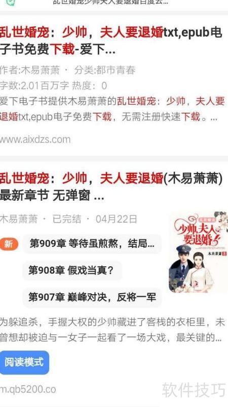 首先确定想阅读的小说名称,然后在百度或任意浏览器(包括手机自带浏览器)中输入小说名加上“百度云下载”进行搜索。例如:“乱世婚宠:少帅夫人要退婚”,即可找到相关的资源。