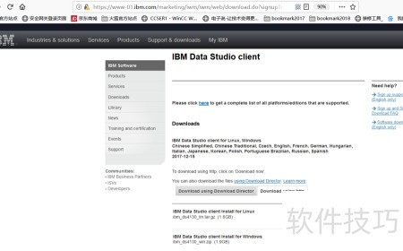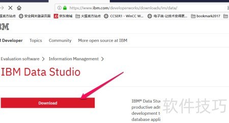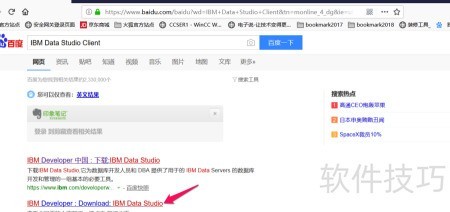 打开浏览器,在搜索栏输入IBM Data Studio Client进行搜索。结果显示第一项为中国版本,但测试后发现无法正常运行。因此选择第二条链接,进入下载页面。具体操作如下所示,成功获取所需安装程序。建议尝试此路径以提高下载成功率。