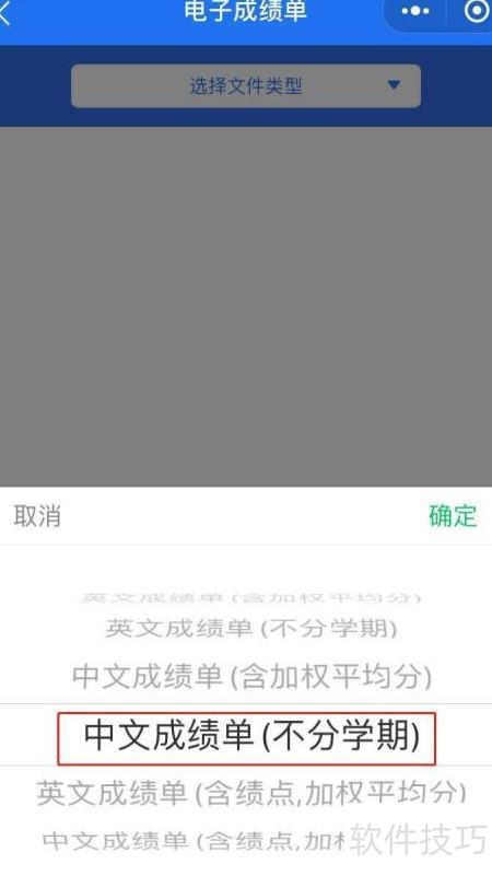 - 根据学校提供的选项,选择所需的电子成绩单类型。