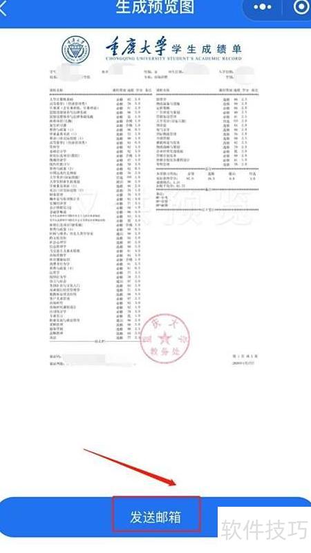 - 预览电子成绩单后,点击发送至邮箱即可。