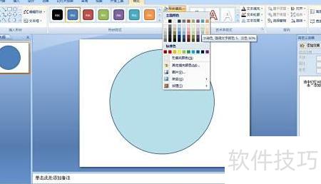 在绘图区域放置鼠标的光标,并用shift键锁定位置后开始移动,即可轻松画出圆形。一旦完成,点击图形并在格式菜单上找到“形状填充”设置,然后根据喜好调整颜色。