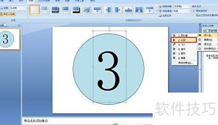 5、 为数字添加动画,选择自定义动画,点击添加效果中的进入选项,然后选择出现效果即可。