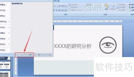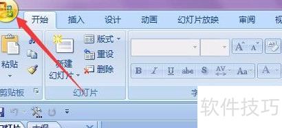 - 点击Office按钮,在下拉菜单中选择PowerPoint选项即可,操作所示。