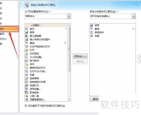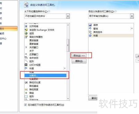 - 在不在功能区的命令中选加载宏,添加至右侧后确认即可。