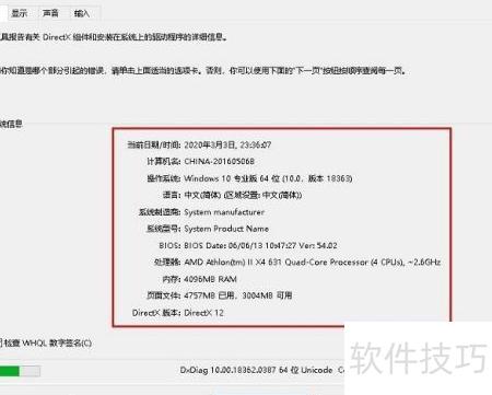 - 约十秒后,系统会弹出DirectX诊断工具窗口,详细列出计算机的各项配置信息供查阅。