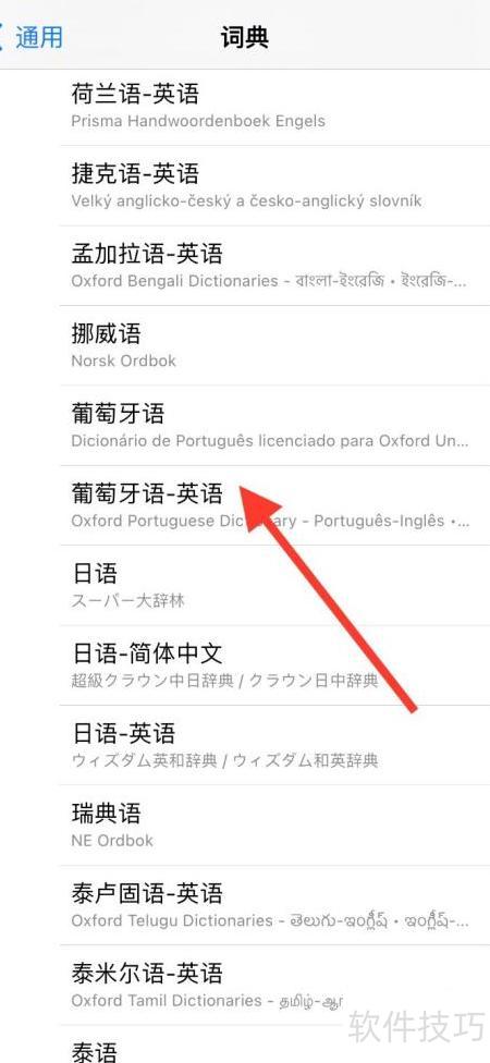 iPhone新增葡萄牙语-英语词典查询功能,具体操作方法如下: