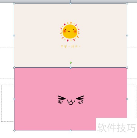 - 插入后是这样,现在若要将两张照片上下拼接,需先将它们调整至目标位置和形状。