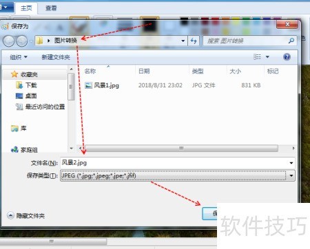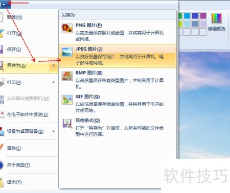 - 打开图片后,点击左上角下拉图标,选择另存为并保存为JPEG格式。