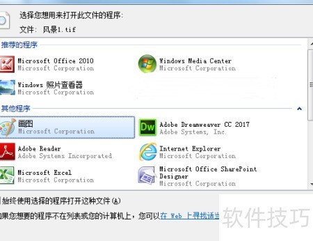 若在打开方式中无法显示画图,请确保已选定“使用默认程序”并从列表中选取画图软件。如已包含画图功能,则无需手动设置。