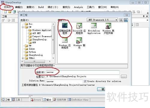 - 创建控制台程序时,在名称栏输入程序名,名称可自定,但首个字符必须为字母。