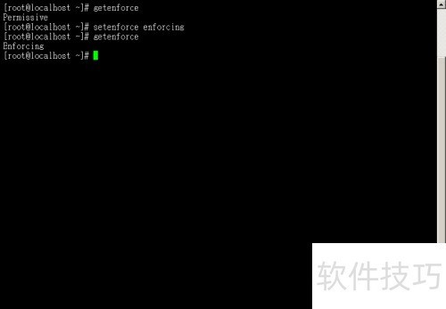 - 使用 getenforce 命令可查看系统当前 SELinux 状态,新安装的系统通常默认启用 SELinux。