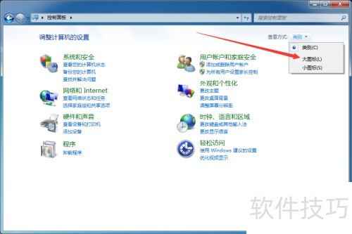 - 切换至大图标视图后,找到Windows防火墙并点击进入。
