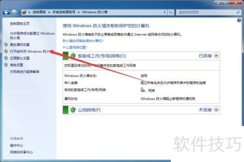 - 点击左上角按钮启用或禁用Windows防火墙功能。
